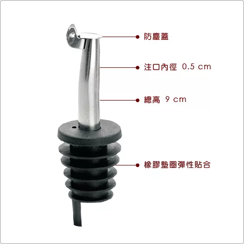 本商品一件入、適合多數油醋瓶、或紅白酒瓶 (瓶口約 2.5 cm 以內適用) 以及手洗清潔並保持乾燥。Clasica 系列,經典設計搭配優雅線條,提供實用與美觀兼具的舒適使用體驗。在家料理時可依著食材的類型與耐溫來更換油品烹調,因此將大罐的油醋換裝成小瓶裝也是家中常見的狀況,不僅好倒也方便保存收納。換成小瓶裝後,您可搭配此款注油嘴,略彎窄管注口可讓您不會一次傾倒過多的液體,讓倒油的過程更俐落、減少滴漏沾染問題;接瓶處橡膠墊圈略有彈性,可適用多數瓶身並貼合瓶口。簡易上蓋,闔上後可防塵乾淨又衛生,是分裝換瓶替代瓶蓋的好選擇。