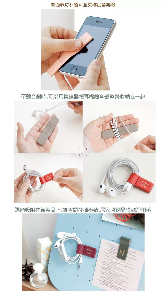 讓您隨時都可以擦拭您的手機螢幕,也讓耳機線乖乖聽話,整齊好收納 :)。